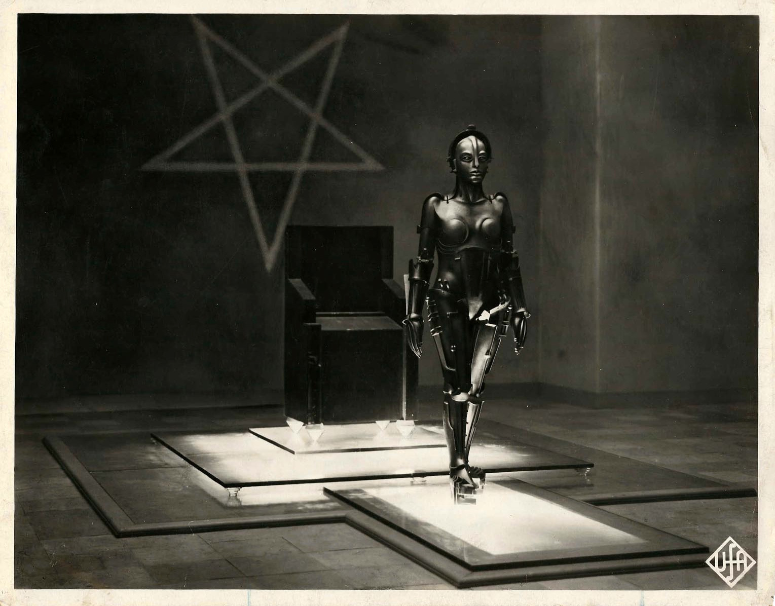 When I was a kid, there was only one Metropolis, and that was the city where Superman lived (I thought it was pronounced like “Metro-polis”). But then I stumbled upon a picture in a magazine from the 1927 Fritz Lang film Metropolis. It kinda confused me at first, because I thought this was the same place where Superman lived. In the film Metropolis, The Future looks pretty cool, that is, if you can afford it. Turns out: it’s a dystopian nightmare for everyone else. In the film, an inventor named Rotwang builds a female robot (a Machinenmensch!) as an expression of unrequited love for a former flame. Original stills and posters from this film are valuable, this one was selling for $24,000 (no, I did not purchase it). Here’s the scene where the Machinenmensh is brought to life by Rotwang, reminiscent of the laboratory scene from Frankenstein (which came out 4 years later in 1931):