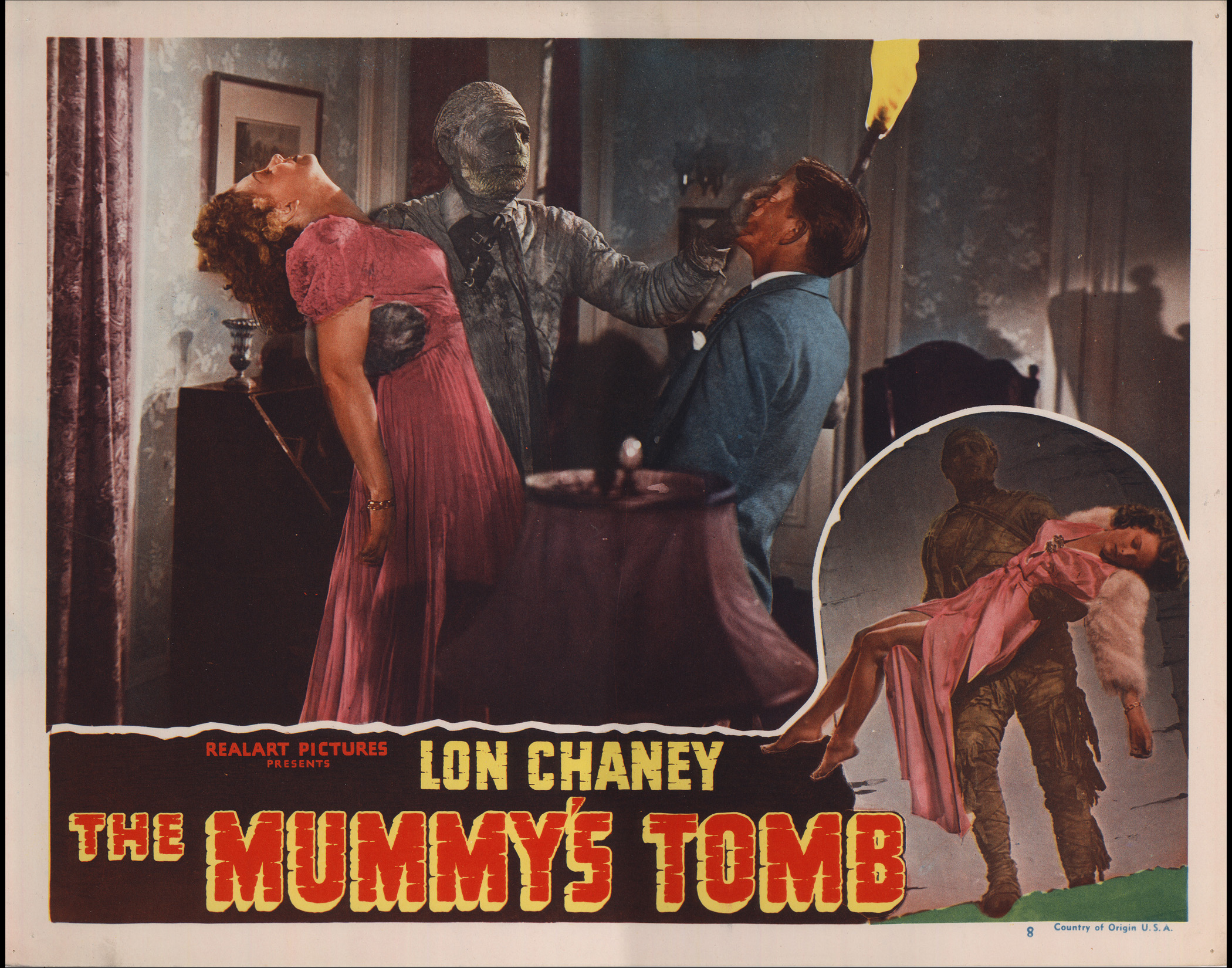 Hey, it’s the day after Mother’s day, why not celebrate Mummies? Maybe the strangest of Universal Studio’s Monster Pantheon? The Mummy featuring Boris Karloff, made in 1932, was the first Mummy film (IMDb’s one sentence summary: A living mummy stalks the beautiful woman he believes is the reincarnation of his lover). The film remains a classic despite it’s low budget and wooden acting (except for Boris Karloff, of course). The scene where the Mummy first comes to life and very quietly surprises the young man reading the Scroll of Thoth is effective: shock, a sudden scream and then hysterical laughter as the Mummy casually grabs the scroll and shuffles off only to turn up later in the film as a “different” character named Ardath Bey, who is both creepy and mesmerizing. Karloff only made one Mummy film. Later incarnations featured Lon Chaney Jr. as the undead one, and in these versions he was not required to speak. He mainly shambled around dragging one leg, an outstretched arm ready to clutch a victim’s throat. Unless, of course, the designated victim would simply get out of the way, by side stepping or walking the other direction, running, whatever, but no, they would JUST STAND THERE HELPLESSLY while the Mummy inexorably approached at the speed of a turtle. Drove me crazy as a kid.